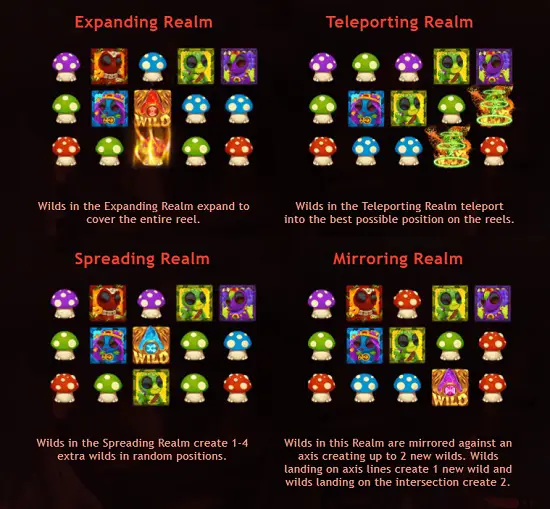 Mirroring Realm - în acest tărâm, Wild-urile din acest tărâm se oglindesc față de o axă, creând până la 2 noi simboluri Wild.